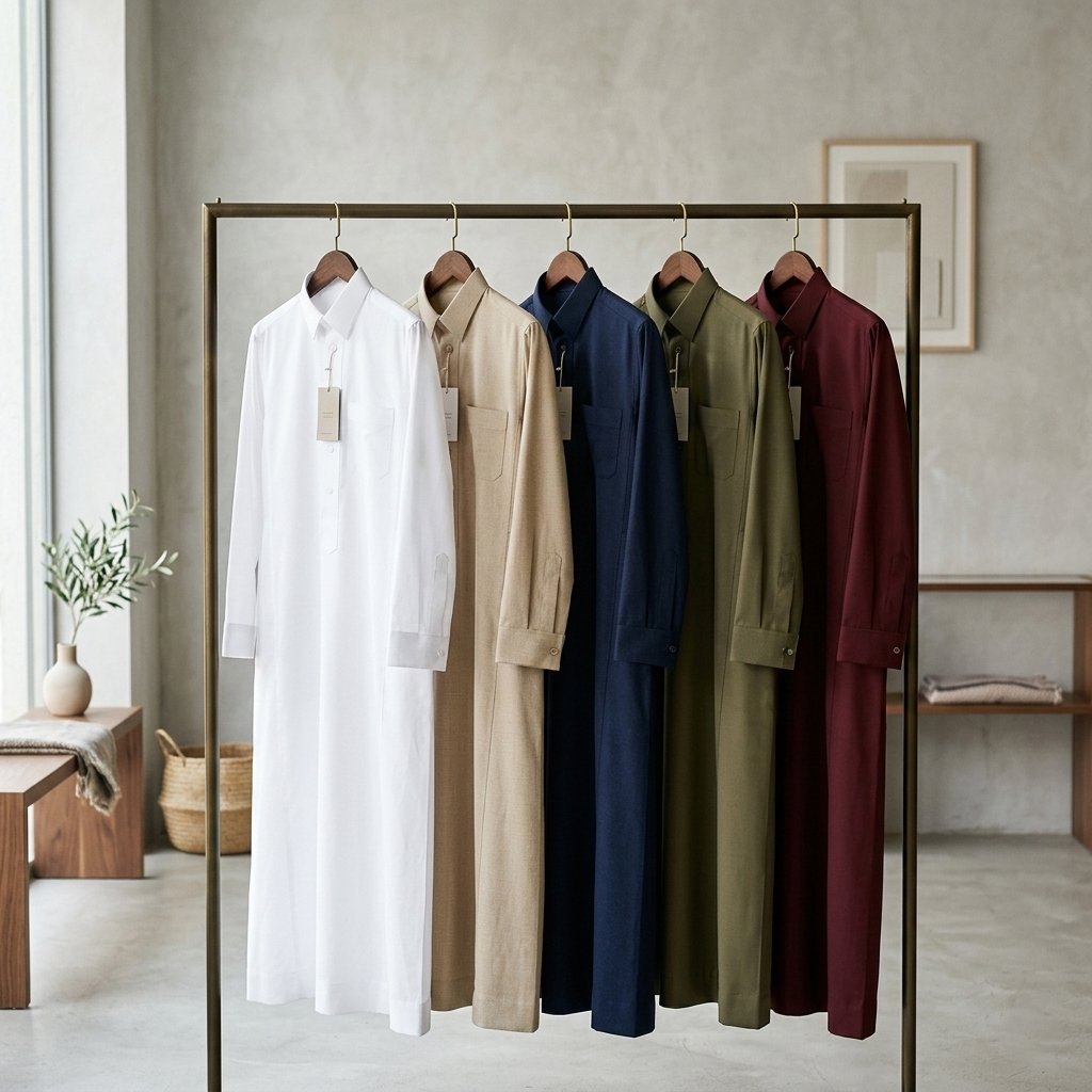 Modern thobes are also highly versatile. Beyond classic white, you can choose from soft neutrals, rich earth tones, and elegant darker shades. Easy to style with sandals, loafers, or a light jacket, the thobe remains a timeless yet adaptable Eid essential.